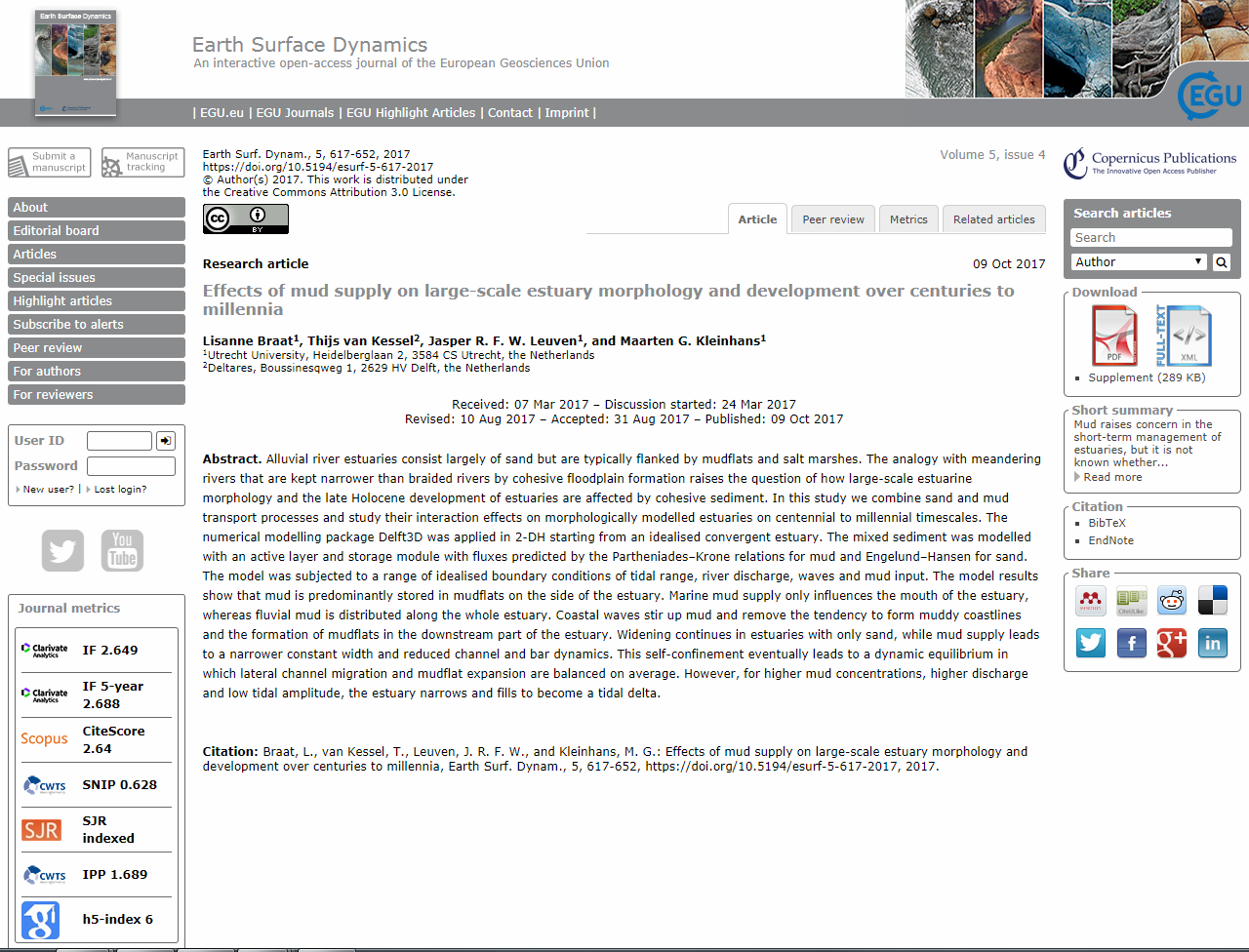 The first-author paper of my PhD thesis was officially published today! If you’re interested, the paper is available for download at: https://www.earth-surf-dynam.net/5/617/2017/. Completely free, of course, because, as mentioned in an earlier post, the whole journal is open access.